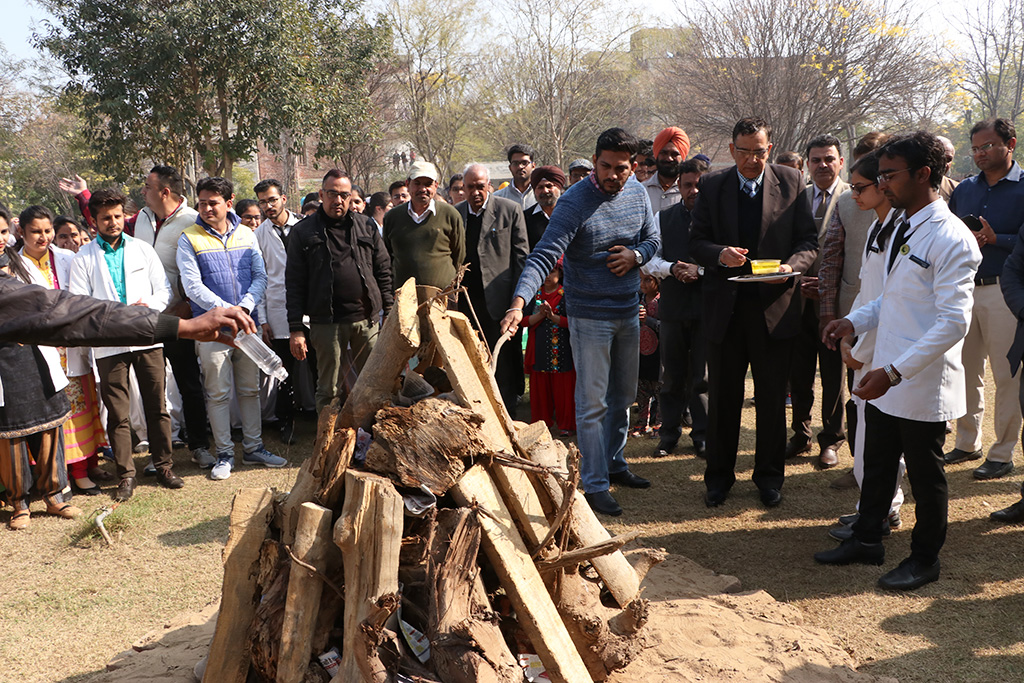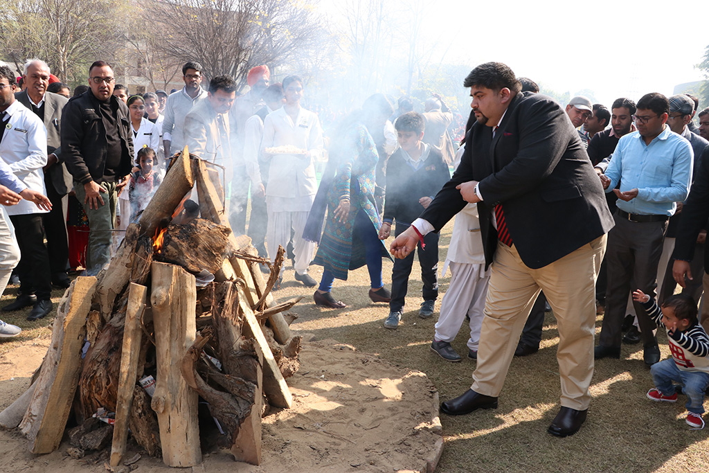 In the program organized under the aegis of JCD Dental College, instituted at the institute, Lohri and Makar Sankranti celebrated at the JCD University premises, the students of Engineering, IBM, Memorial, Education College, Pharmacy and Women and Male Dormitory also organized Sacrifice in fire.