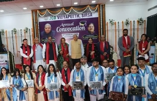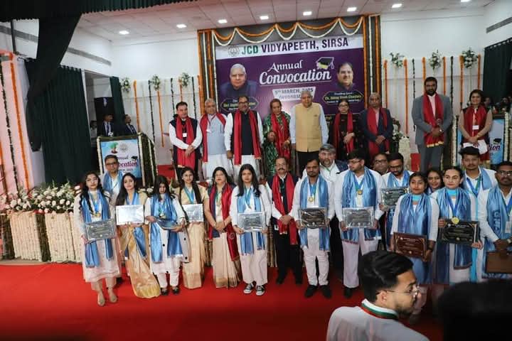 The Convocation Ceremony of JCD Dental College, Sirsa, along with other constituent colleges of JCD Vidyapeeth, was held on 5th March 2025. The Hon’ble Vice President of India, Shri Jagdeep Dhankhar Ji, graced the occasion as the Chief Guest. Dr. Sudesh Dhankhar Ji was the Guest of Honour, and Shri Abhay Singh Chautala Ji, Chairman of JCD Memorial Trust, presided over the event.