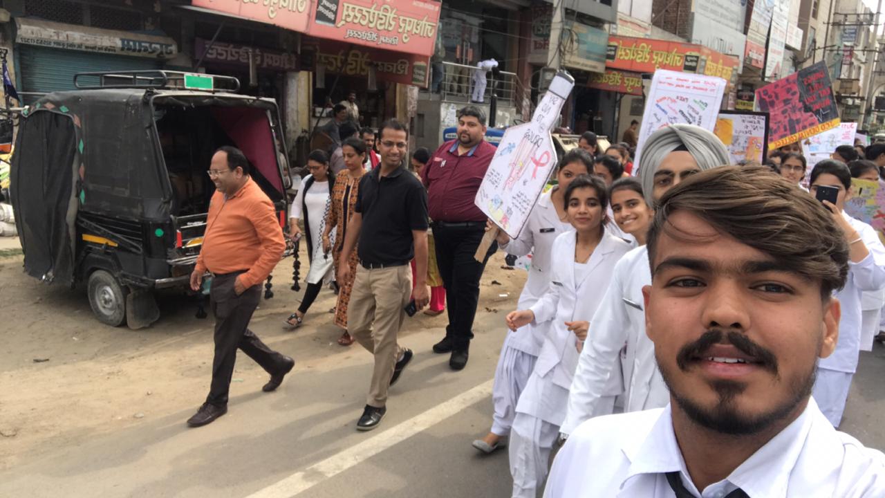 On Friday, the students, principal and teachers of JCD Dental College organized an awareness rally against drug addiction. Dr. Shamim Sharma said that Drug addiction is the home of destruction, solidarity is necessary to end it.