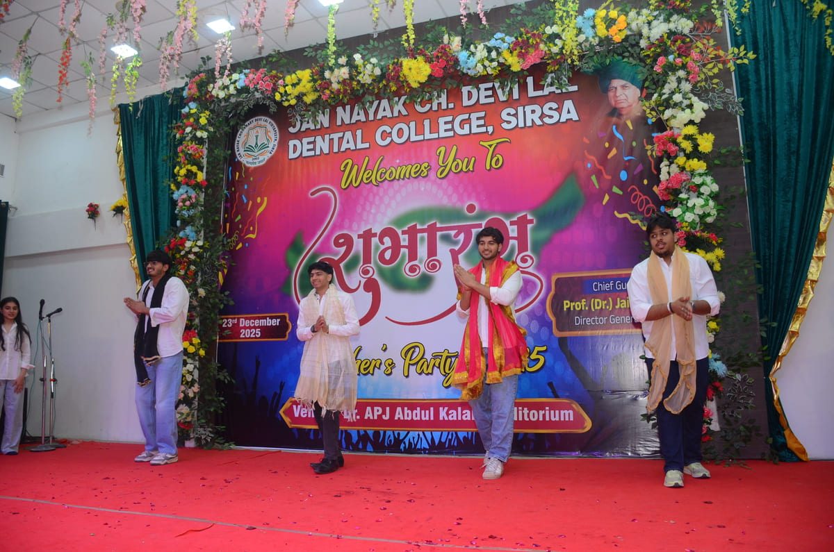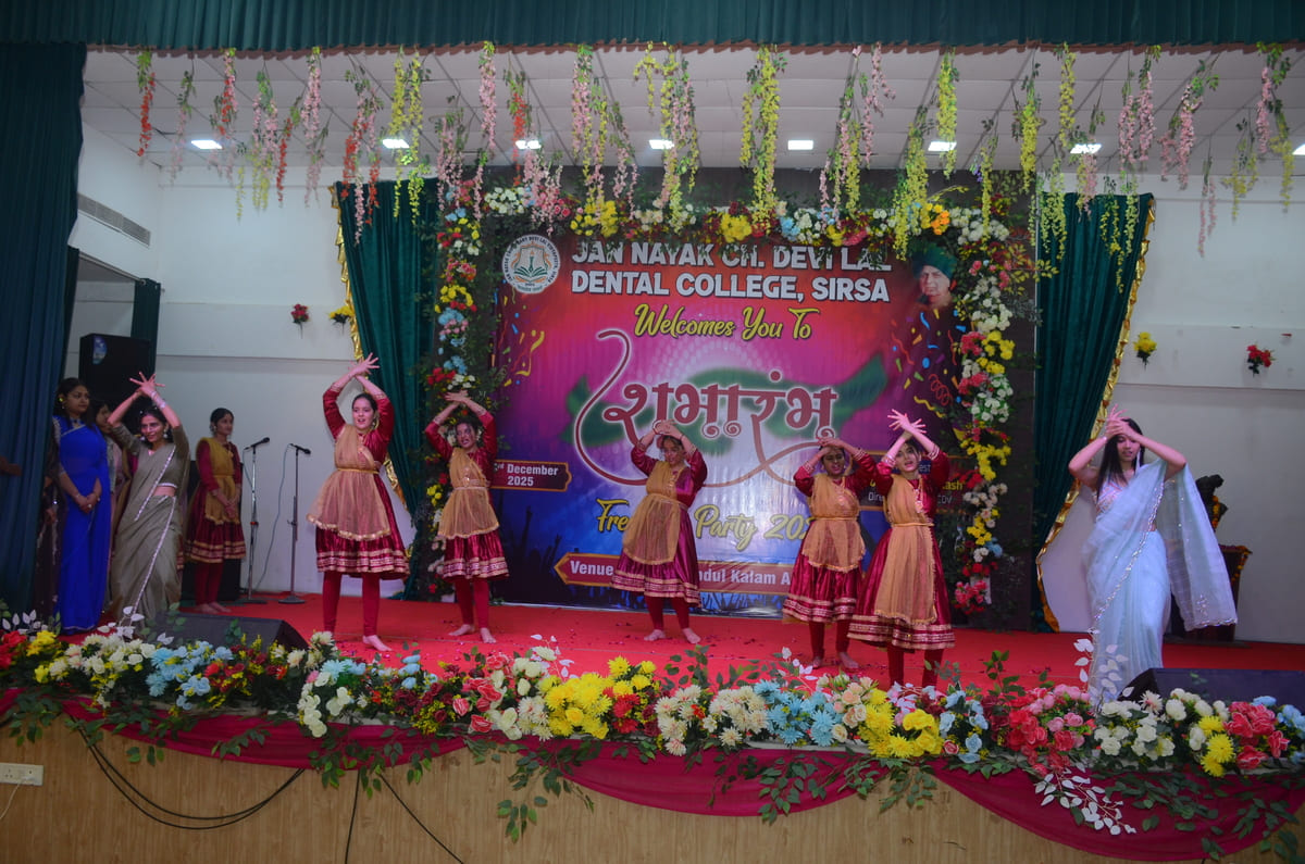 JCD Dental College, Sirsa organized a grand Fresher’s Welcome Programme titled “Shubharambh” to warmly welcome the BDS 2025 batch students. The event marked a joyful beginning of the academic journey for the newly admitted students and reflected the institution’s vibrant cultural ethos.